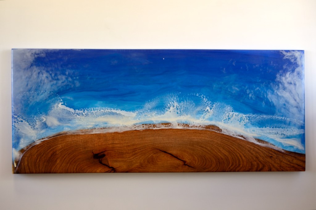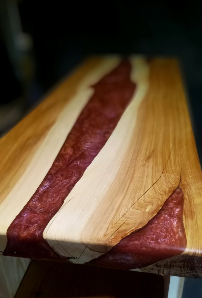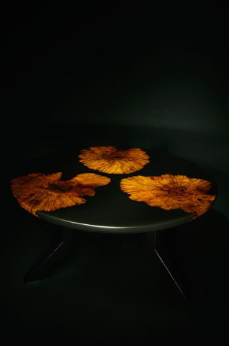 I utilize the live edge curves of the wood with eco-friendly epoxy resin to create a balance of solid & liquid.