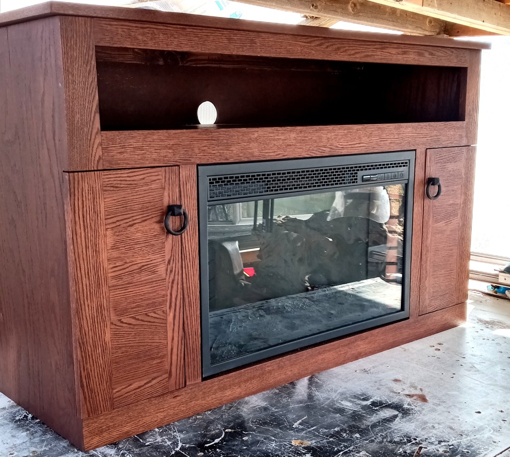 I liked his work so much that I had him build me a live edge river coffee table and an oak tv cabinet with an electric fireplace.